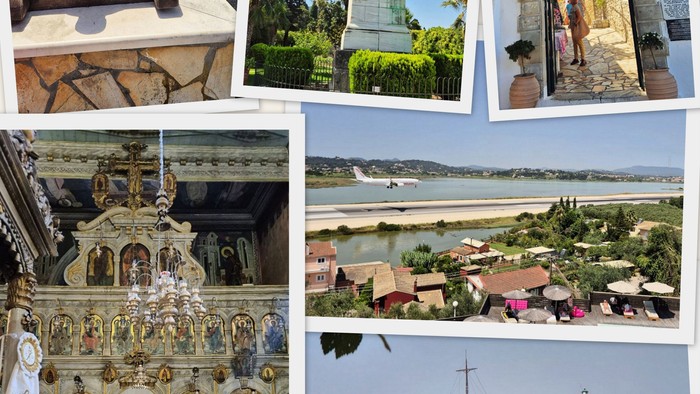 o.li. und Mitte re.: Kanoni, o. Mitte: Achilleon, o.re.: Paleokastritsa, u.li.: Paleokastritsa, u.re.: alte Festung Korfu Stadt